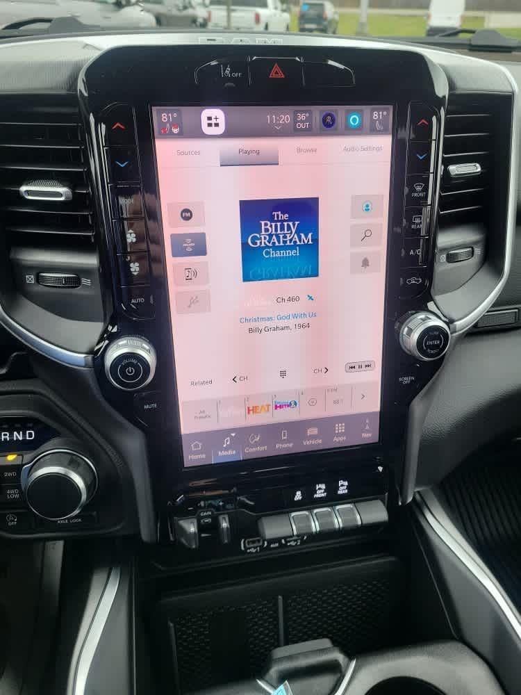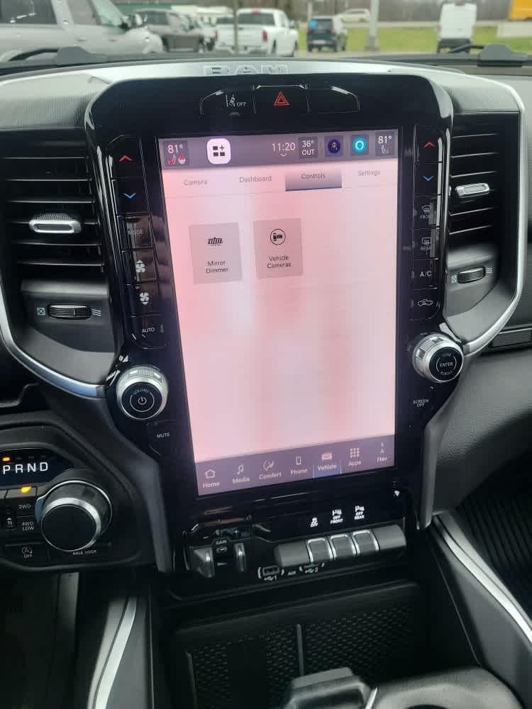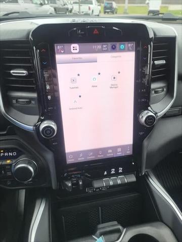 Active Noise Control System, Heavy Duty Engine Cooling, Passive Tuned Mass Damper, GVWR: 7,100 lbs, Dual Rear Exhaust w/Bright Tips, G/T Exhaust, 18 Aluminum Spare Wheel, SiriusXM Radio Service, Power Adjustable Pedals, Leather Wrapped Steering Wheel, 12 Touchscreen Display, Glove Box Lamp, Auto Power-Folding Mirrors, 115V Auxiliary Rear Power Outlet, Media Hub w/2 Charge Only USBs, Heated Front Seats, Security Alarm, Black Premium Power Mirrors, Premium Overhead Console, 9 Amplified Speakers w/Subwoofer, Disassociated Touchscreen Display, Body Color Fender Flares, Remote Tailgate Release, 115V Auxiliary Power Outlet, LED Dome Lamp w/On/Off Switch, Universal Garage Door Opener, 2nd Row In Floor Storage Bins, Sun Visors w/Illuminated Vanity Mirrors, LED Footwell Lighting, Rear Window Defroster, Rear View Auto Dim Mirror, Rear Power Sliding Window, GPS Navigation, Overhead LED Lamps, Wheels: 20 x 9 Aluminum Chrome Clad (WRK), Tires: 275/55R20 OWL All, MOPAR Spray In Bedliner, MOPAR 4 Adjustable Cargo Tie-Down Hooks, Pick-Up Box Lighting, Exterior 115V AC Outlet, E-LOCKER REAR AXLE, MOPAR FRONT & REAR RUBBER FLOOR MATS, TRANSMISSION: 8-SPEED AUTOMATIC (8HP75). Keyless Entry, Privacy Glass, Child Safety Locks, Electronic Stability Control, Bucket Seats.