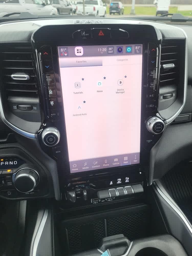 Back-Up Camera, iPod/MP3 Input, Trailer Hitch, Aluminum Wheels, Remote Engine Start, Apple CarPlay®, Smart Device Integration, Blind Spot Monitor, WiFi Hotspot, Cross-Traffic Alert, Lane Keeping Assist. Ram Big Horn with Bright White Clearcoat exterior and Black interior features a 8 Cylinder Engine with 395 HP at 5600 RPM*.