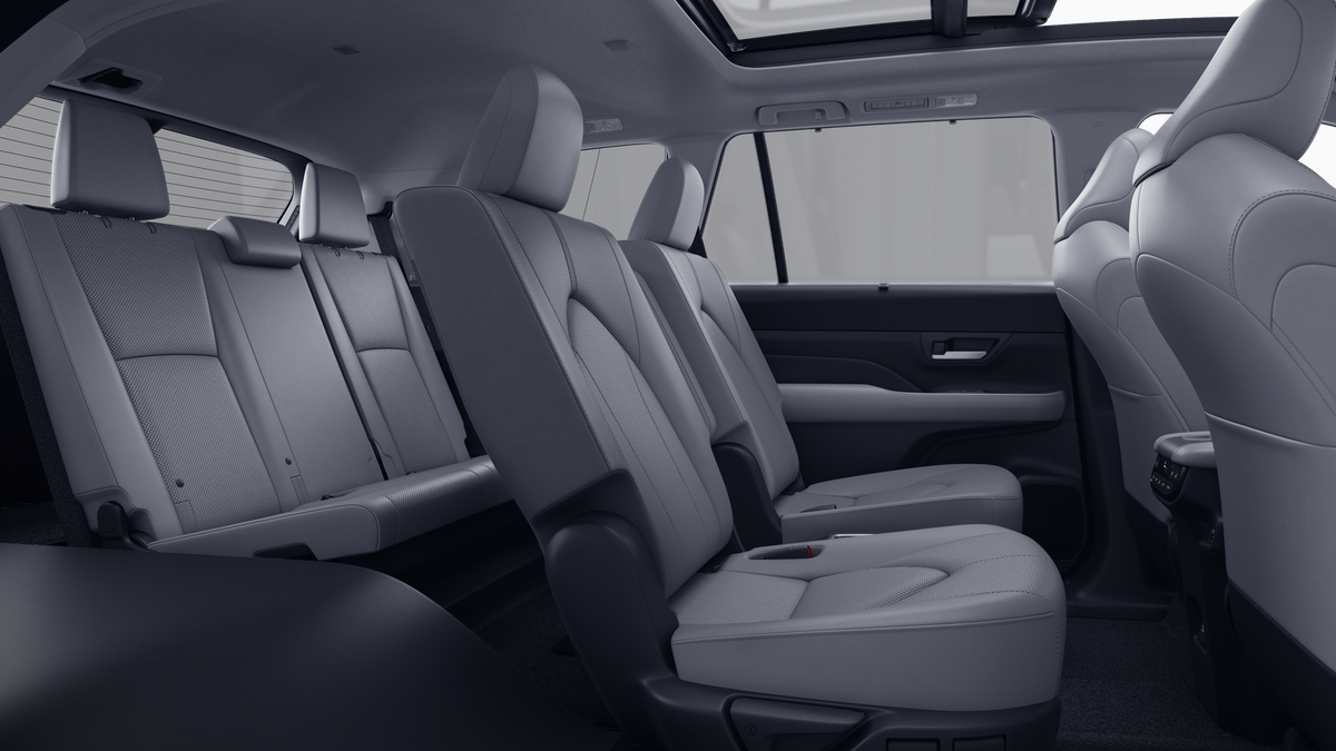 - 7-passenger seating with second-row fold-down captain's chairs and fold-down inboard armrests, adjustable headrests and two cup holders mounted on the floor; and 60/40 split, fold-down third-row seats with sliding headrests and recline function