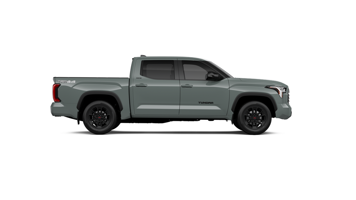 - Chrome "TUNDRA" and "LIMITED" door badges, door handles and window molding; color-keyed mirror caps and tailgate spoiler; gray-painted overfenders