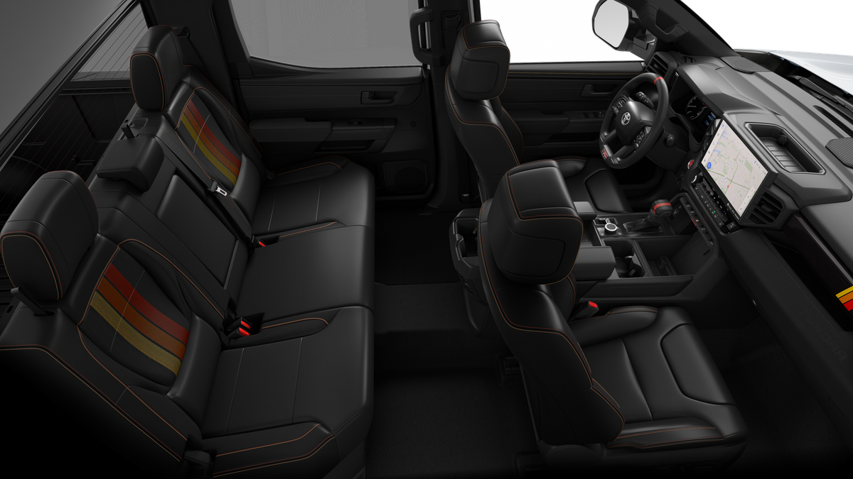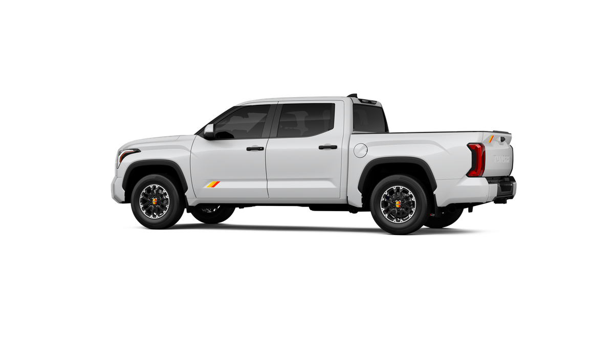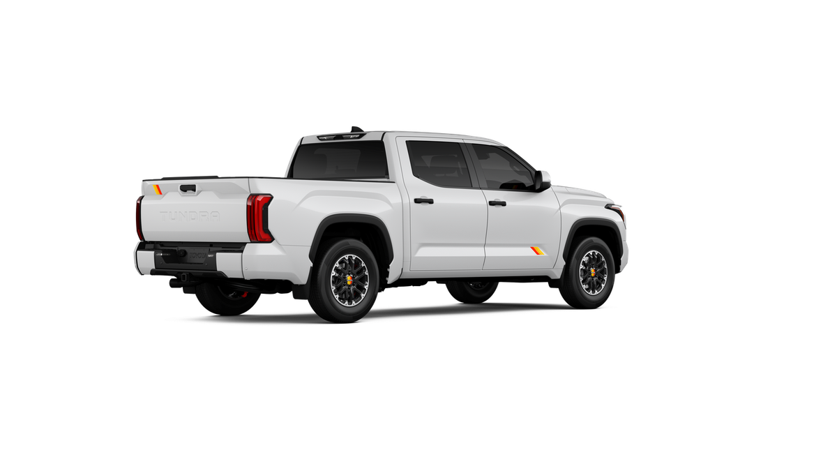 - Chrome "TUNDRA" and "SR5" door badges; black door handles, window molding, mirror caps, tailgate spoiler and overfenders