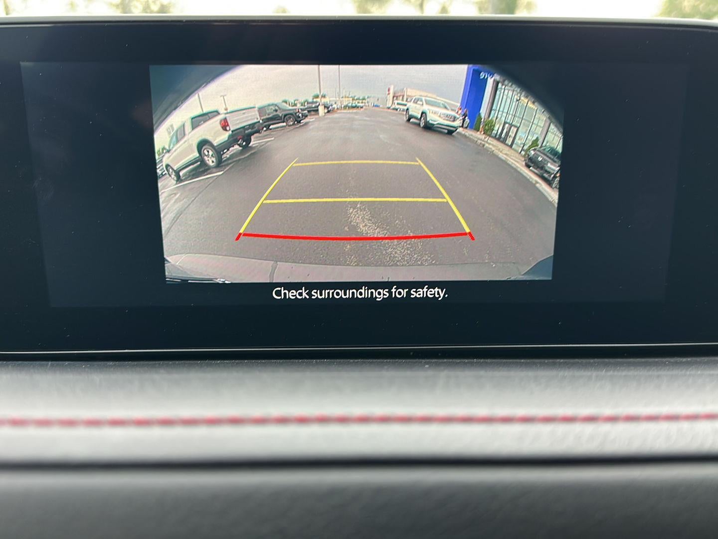 - The vehicle is equipped with a camera that displays an image of the area behind the vehicle on an interior display.